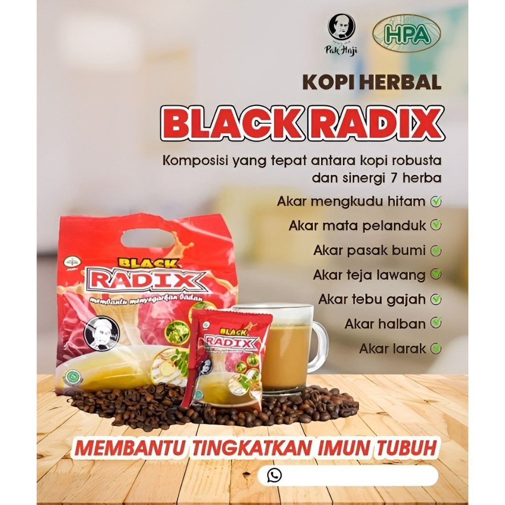 Black RADIX Pak Haji merupakan Kopi yang memiliki multimanfaat yang salah satunya adalah menjaga vitalitas, imunitas dan melindungi tubuh dari radikal bebas.