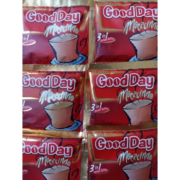 Kopi GOOD DAY MOCACINNO sudah plus gula, dijamin paling pas dengan membeli satu renceng karena harga lebih murah dan terjangkau