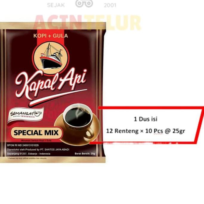Dalam 1 dus kopi kapal api mix berisi 12 renceng x 10 bungkus, jumlahnya 120 bungkus @25 gram.