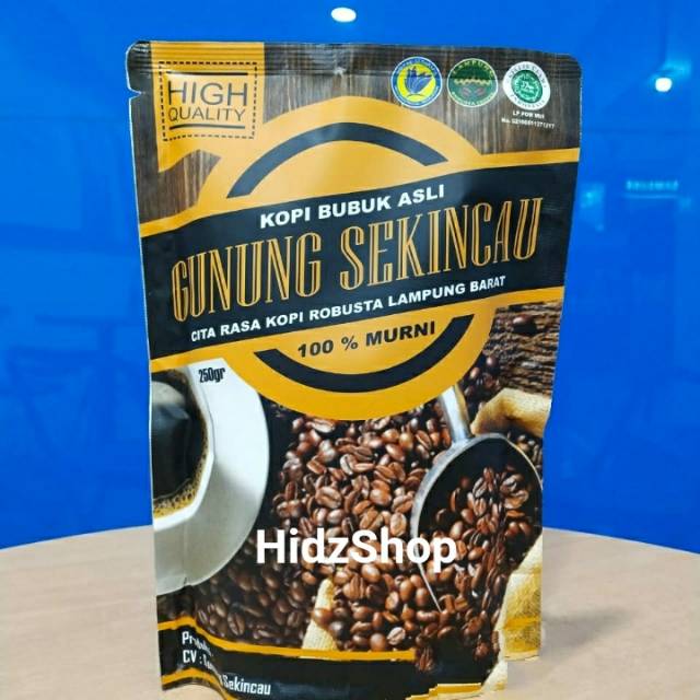 Kopi Bubuk Asli Gn. Sekincau, cita rasa kopi Robusta Lampung Barat. 100% murni. 250gr dan 150gr
