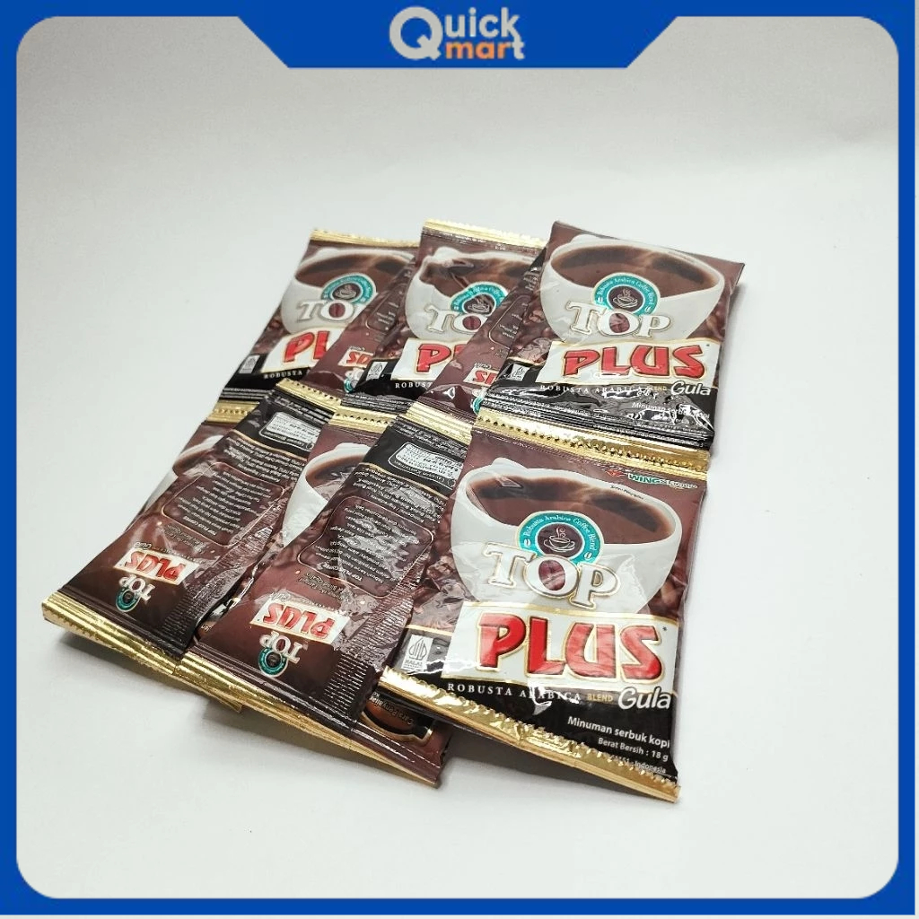 Diolah dengan mesin dan proses yang modern, Kopi TOP PLUS menghasilkan keharuman dan cita rasa yang terjaga lebih lama dan lebih fresh. Kopi TOP PLUS hanya menggunakan bahan asli, tanpa bahan tambahan seperti perisa, pemanis ataupun jagung. Kopi TOP PLUS dicampur dengan menggabungkan dua biji kopi terbaik, Robusta dan Arabica. Karakter Arabica memiliki aroma yang eksotis, sedikit fruity, manis, dan sedikit tajam.