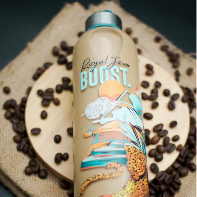 It's our Royal Java Boost. Dapatkan segera serinya, hanya IDR 110k per botol sahabat akan mendapatkan berbagai kejutan. Dimulai dengan kopi yang enak, artwork, dan botol minum yang dapat Sahabat isi ulang pada store Tiga Ikat dengan promo menarik!
