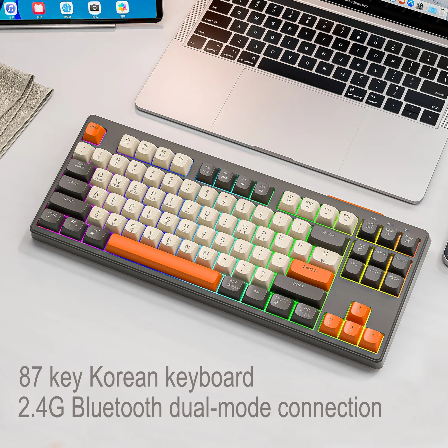 Korean Wireless Keyboard 2.4G Bluetooth Dual Mode Connectivity Rechargeable RGB Backlight 87 Key Gaming Keyboard For PC Laptop