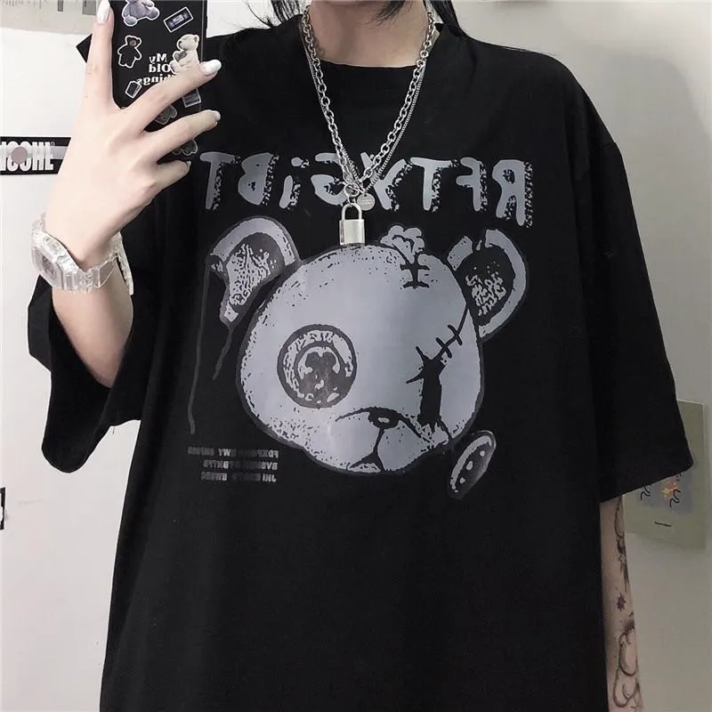 Kpop прохладный черный для девочек уличная модная одежда для мальчиков; Летняя с короткими рукавами с принтом с животных вечерние Футболка с ...