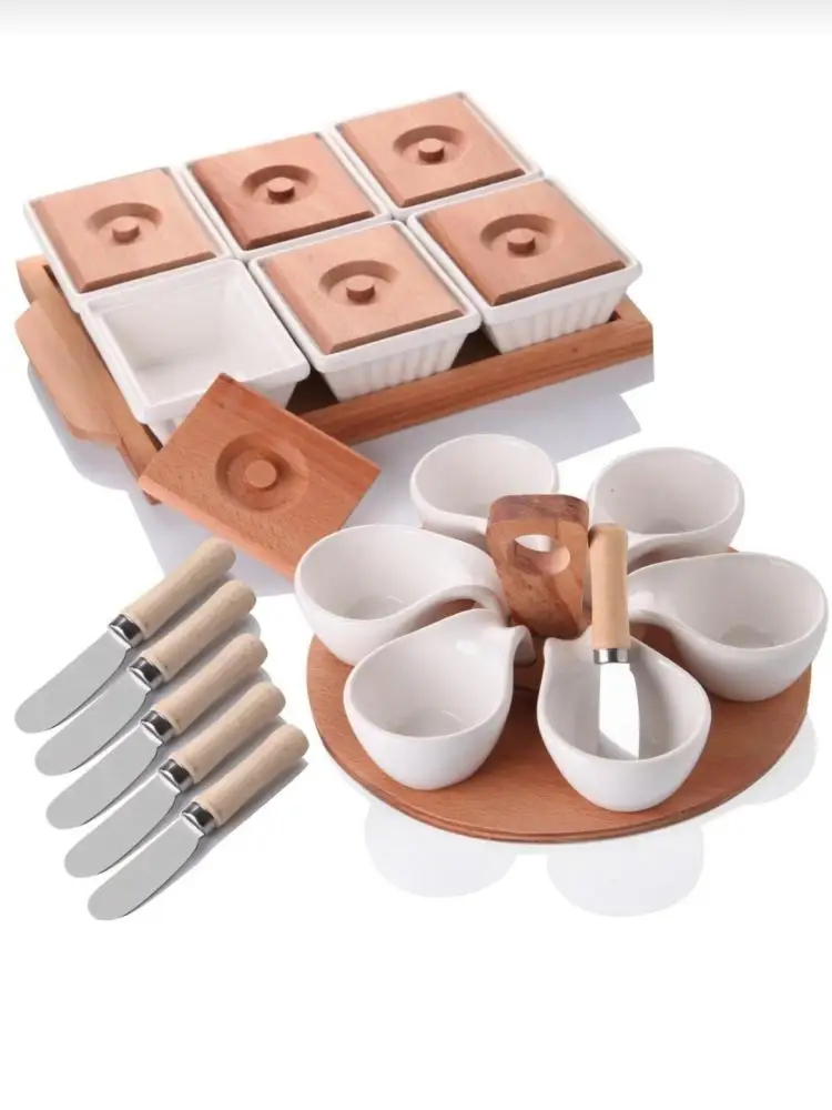 Wooden Luxury Breakfast Presentation Set 26 Pcs Snack Plates Knife | Tray Kitchen