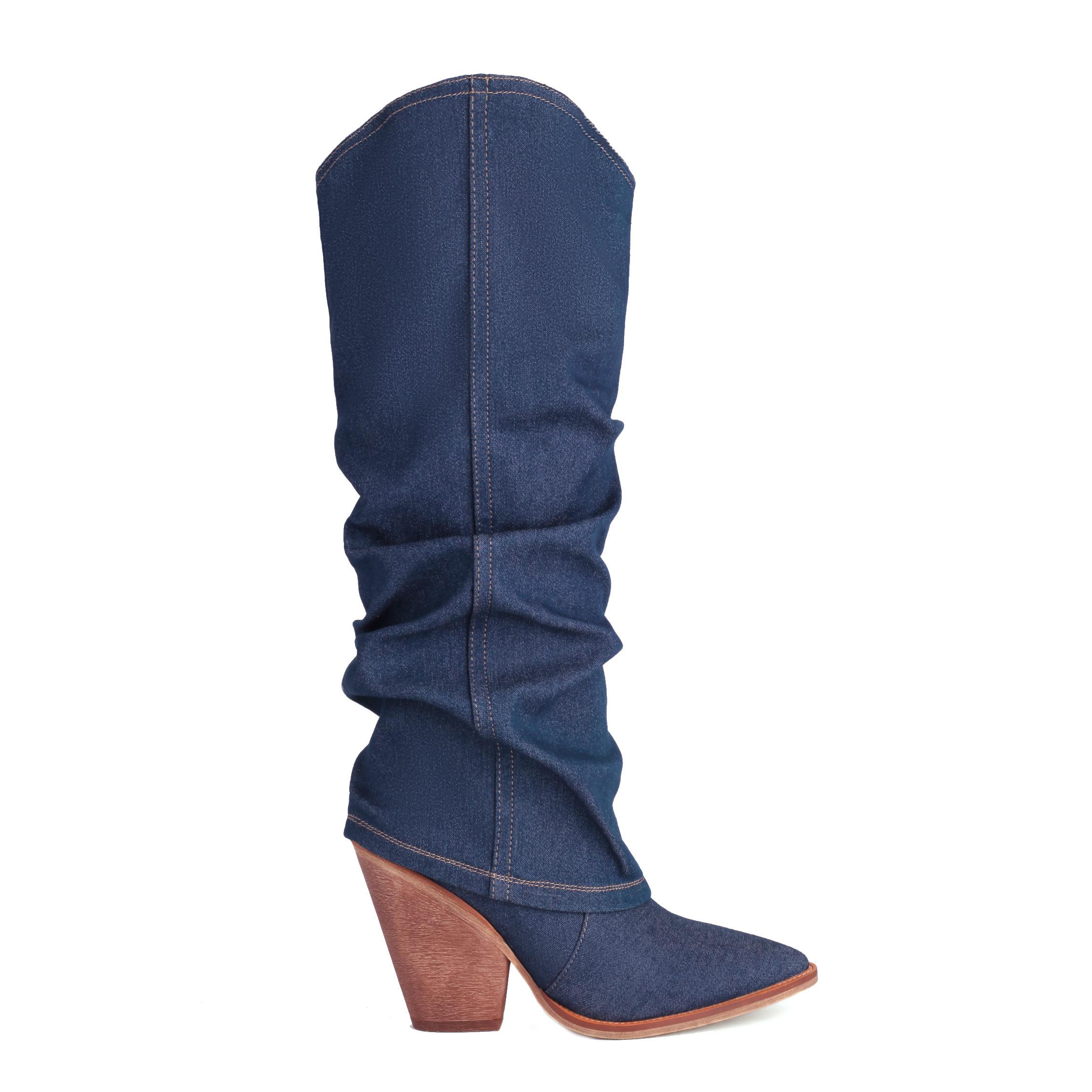 Krazing Pot Джинсовая обувь осень-зима на очень высоком каблуке с европейским дизайном, плиссированные украшения, сохраняющие тепло высокие сапоги 39 синий