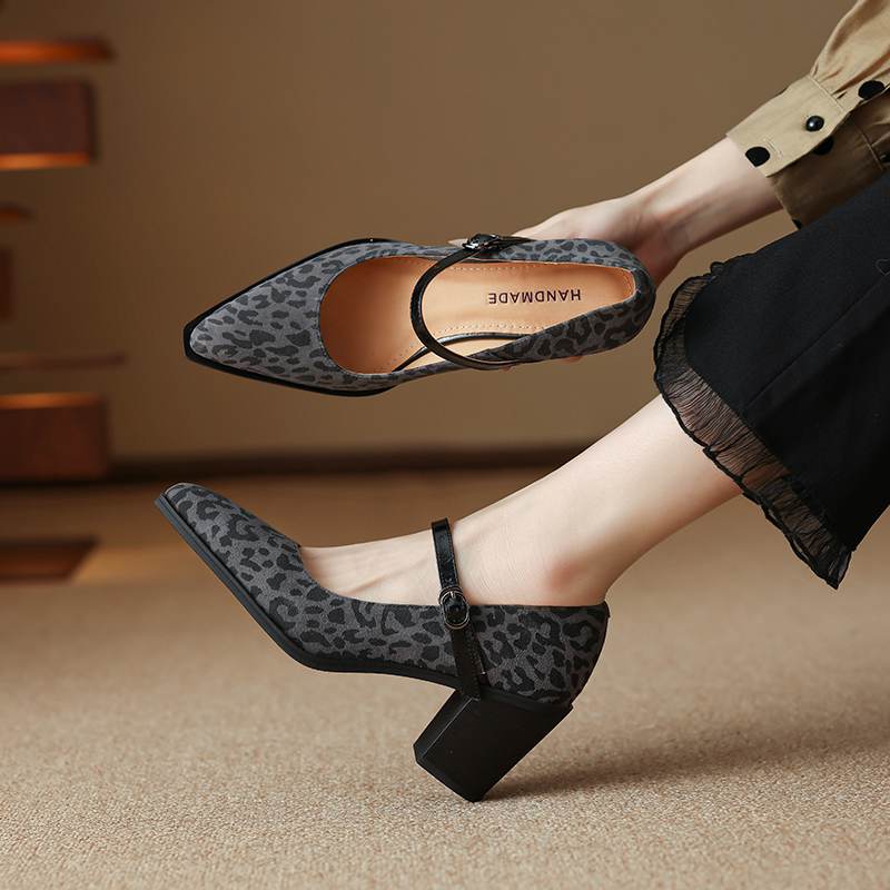 Krazing Pot Замшевые Леопардовые Туфли-лодочки с Острым Носком Размер 41 Массивный Высокий Каблук Слипоны Офисная Леди Винтажные Осенние Туфли 41 серый