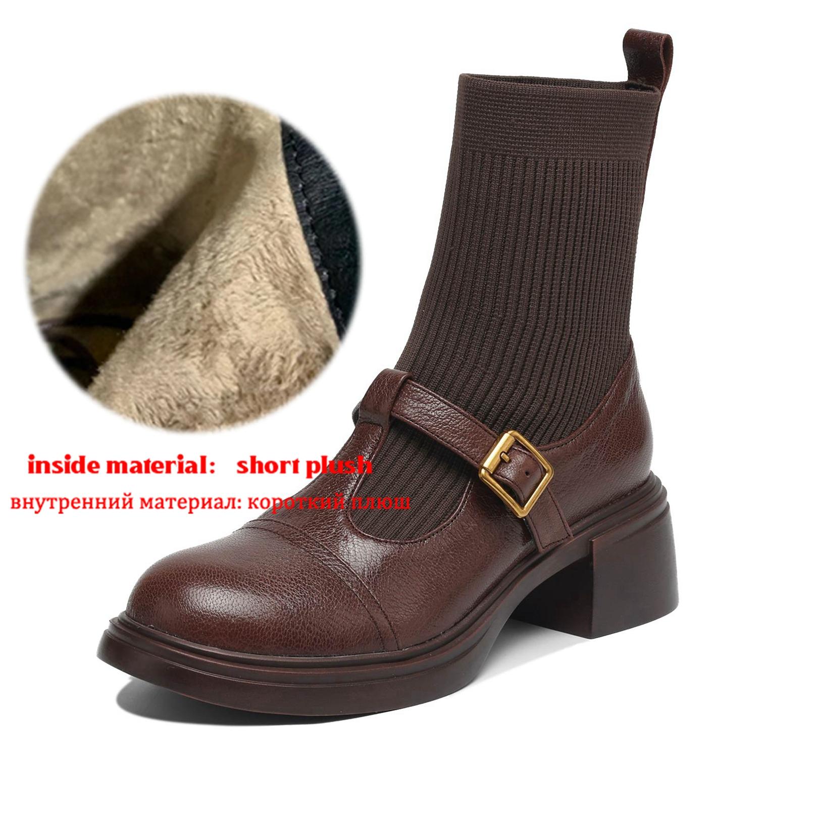 Krazing Pot Кожа коровы Круглый носок Толстый каблук Эластичные ботильоны Размер 42 Женские Металлическая пряжка Трикотажные ботильоны 42