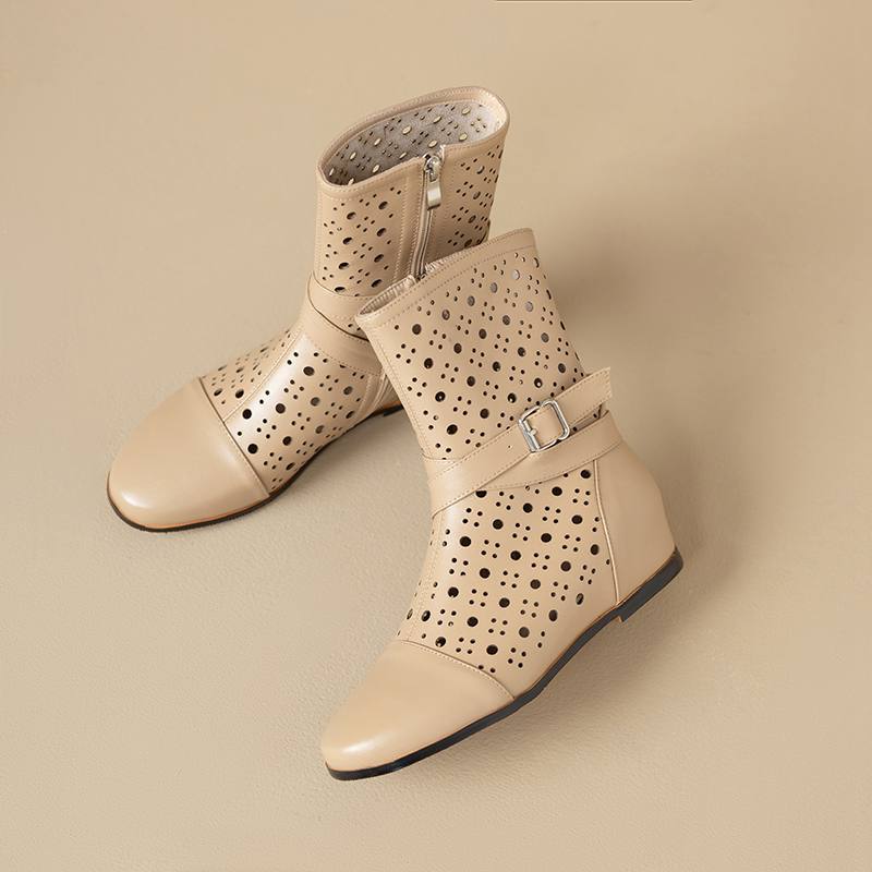 Krazing Pot Коровья спилковая кожа Круглый носок Размер 43 Увеличение Летние ботинки Мода Полые украшения Пряжка Летние ботинки 39 абрикосовый
