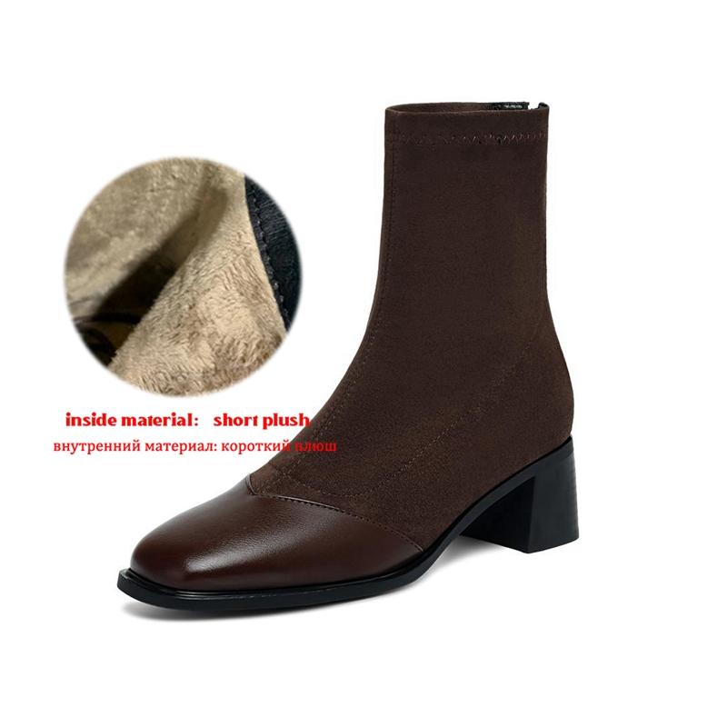 Krazing Pot Микрофибра Флок Круглый Носок Средний Каблук Эластичные Сапоги Размер 43 Слипоны Женские Лоскутные Ботильоны 33