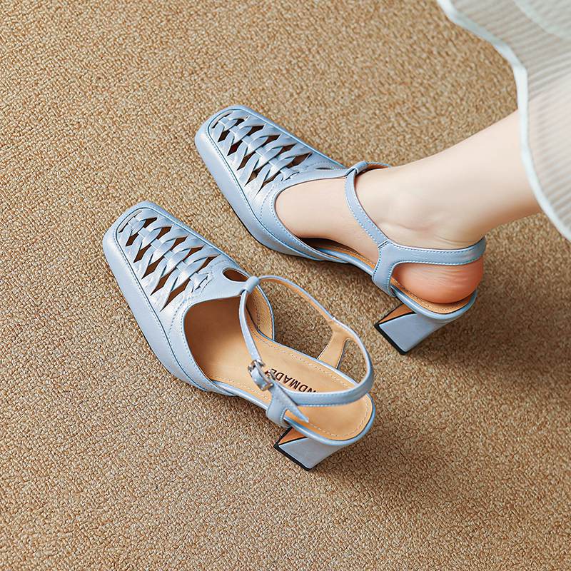 Krazing Pot Овчина Квадратный Носок Размер 41 Толстый Высокий Каблук Вечеринка Свадебная Обувь Осень Полая Отделка Лето Лодочки 41 baby голубой