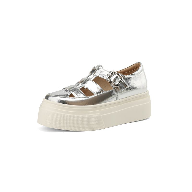Krazing Pot из натуральной кожи, весенне-осенне-летние кроссовки на платформе с пряжкой и ремешком, женская повседневная обувь серебристого цвета 35 серебряный