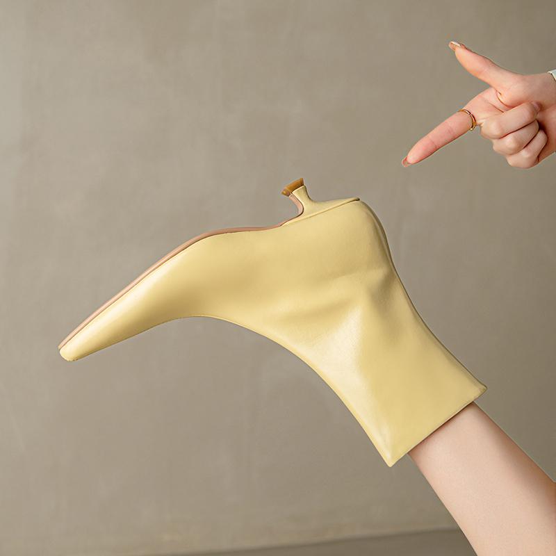 Krazing Pot Cow Skin Осенне-зимние туфли на шпильках со средним каблуком Современные ботинки с острым носком Сохраняют тепло Ботильоны желтого цвета 39 жёлтый