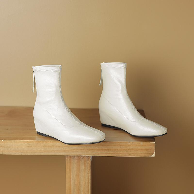 Krazing Pot PU осенне-зимние туфли в стиле ретро на танкетке, размер 43, лаконичный стиль, квадратный носок, сохраняющий тепло, ботильоны 39 слоновая кость