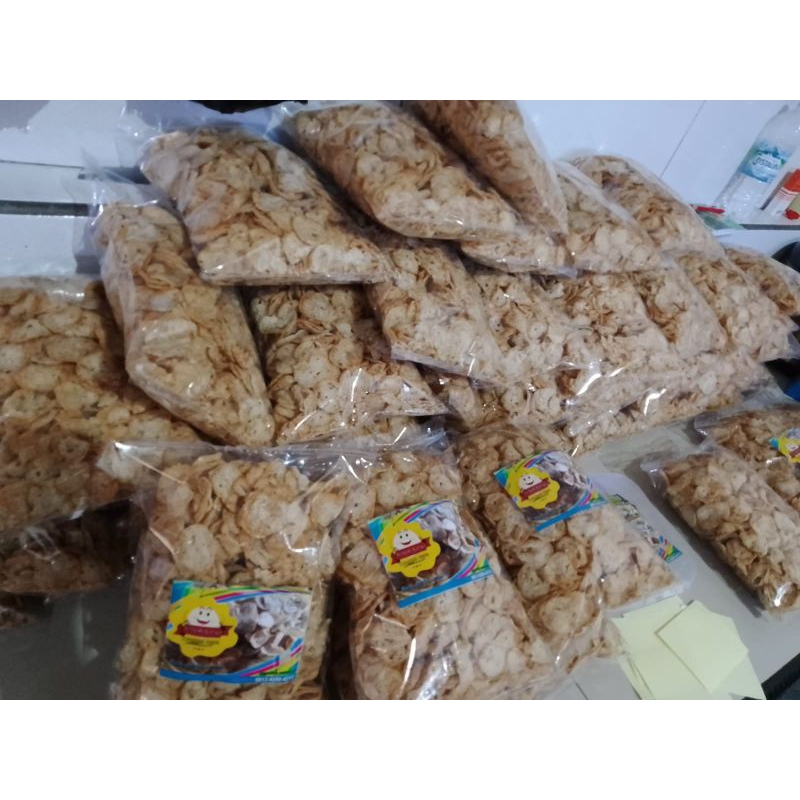 Kripik yang terbuat dari Tepung Tapioka, Tepung Terigu, Daging Sapi dan bumbu - bumbu lain