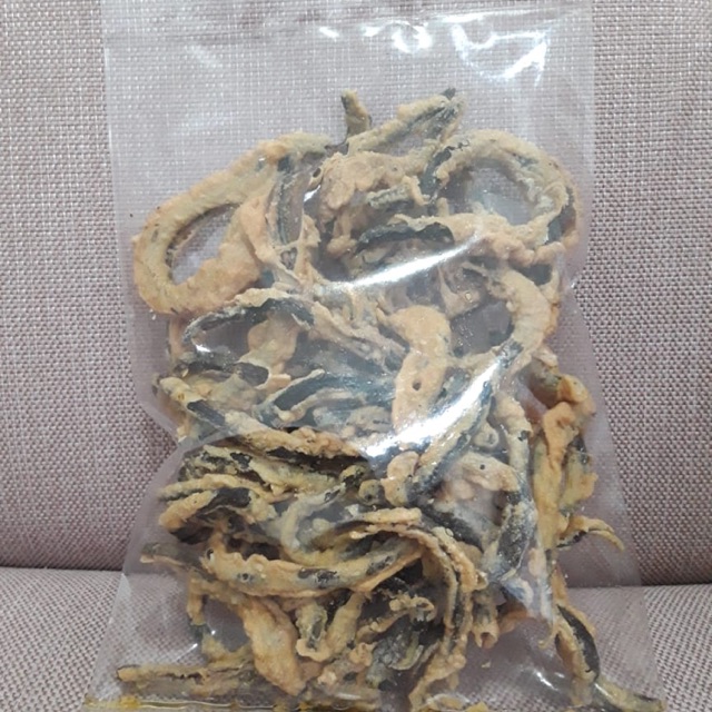 Kripik Belut renyah berat 200gram. Bila stock ada langsung dikirim segera
