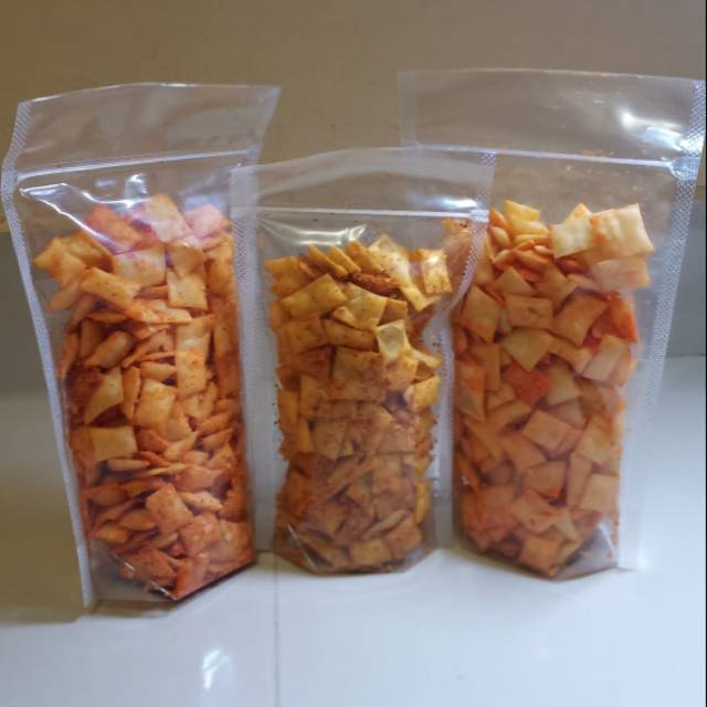 Kripik Pangsit yang di kasih dengan bumbu berbagai rasa.