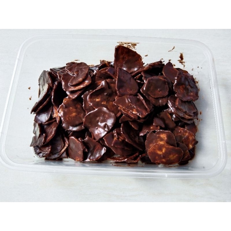 Kripik pisang coklat lumer kami rendam langsung kedalam coklat, bukan di celupin, jadi coklatnya melimpah.