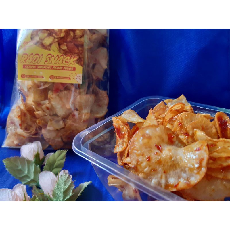 Kripik singkong pedas manis terbuat dari bahan pilihan sebagai cemilan ringan yang dapat dinikmati kapan saja di setiap suasana
