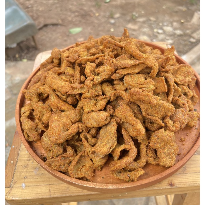 Di buat dari kulit ayam bagian dada jadi murni kulit, rasa renyah dan pedas daun jeruk