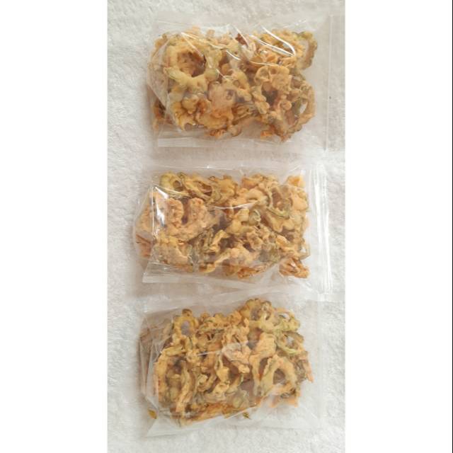Keripik pare dibuat dari pare segar tanpa bahan pengawet dan non MSG. Kandungan minyak sedikit. Renyah dan gurih.