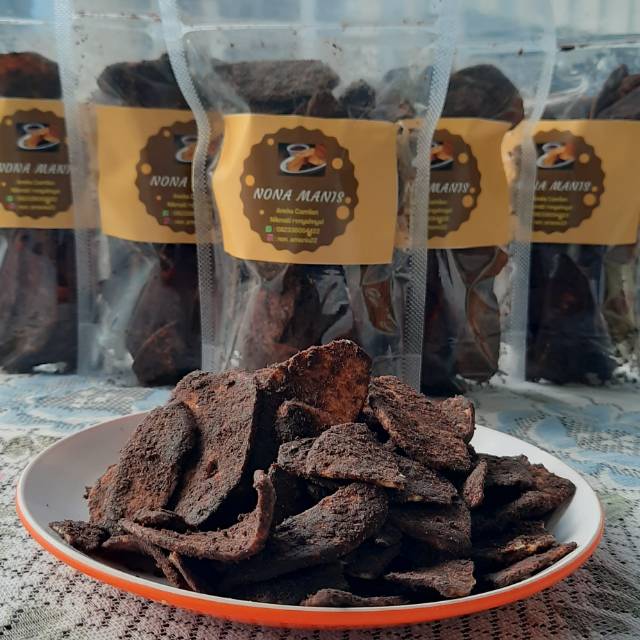 Kripik pisang organik renyah dibalur dengan coklat manis.