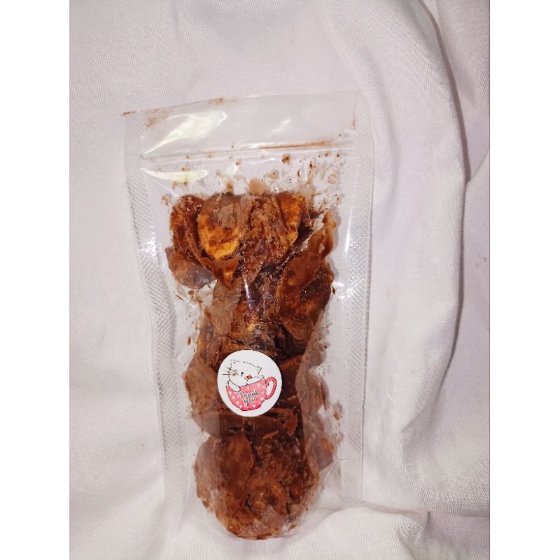 kirpik pisang rasa coklat yang manis dan renyah..dengan balutan coklat yang tebal dan manis kripik pisang terasa lebih enak..silahkan di coba rasanya
