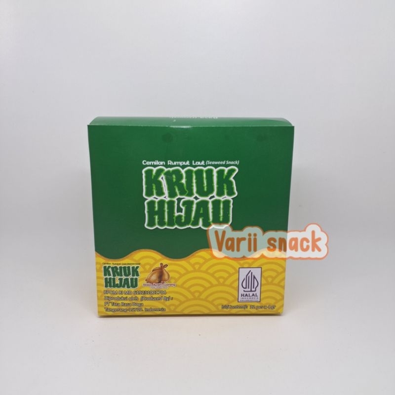 Kriuk Hijau Cemilan Rumput Laut Rasa Ayam / Sapi / Pedas 1 Box 12 pcs