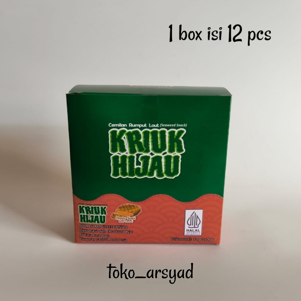 Kriuk Hijau Cemilan Rumput Laut Rasa Sapi isi 12 pcs