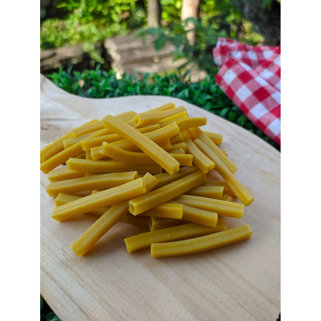 Krupuk berbentuk stik berwarna kuning. cocok untuk seblak instan, cuanki instan, mie instan, dll.