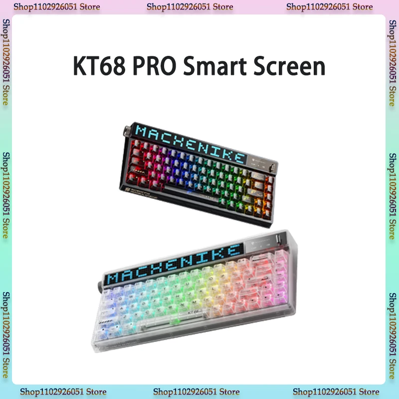 Kt68 Pro Intelligent Screen Mechanical Keyboard Transparent Ice 68-key Rgb Hot Plug Wired/bluetooth /2.4g Game Keyboard
