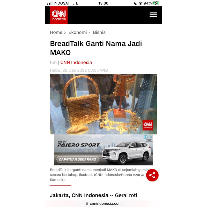 Untuk informasi, breadtalk skrng sudah rebranding menjadi mako bakery ya guys. Isi dan rasa tetap sama, hanya ganti nama saja.