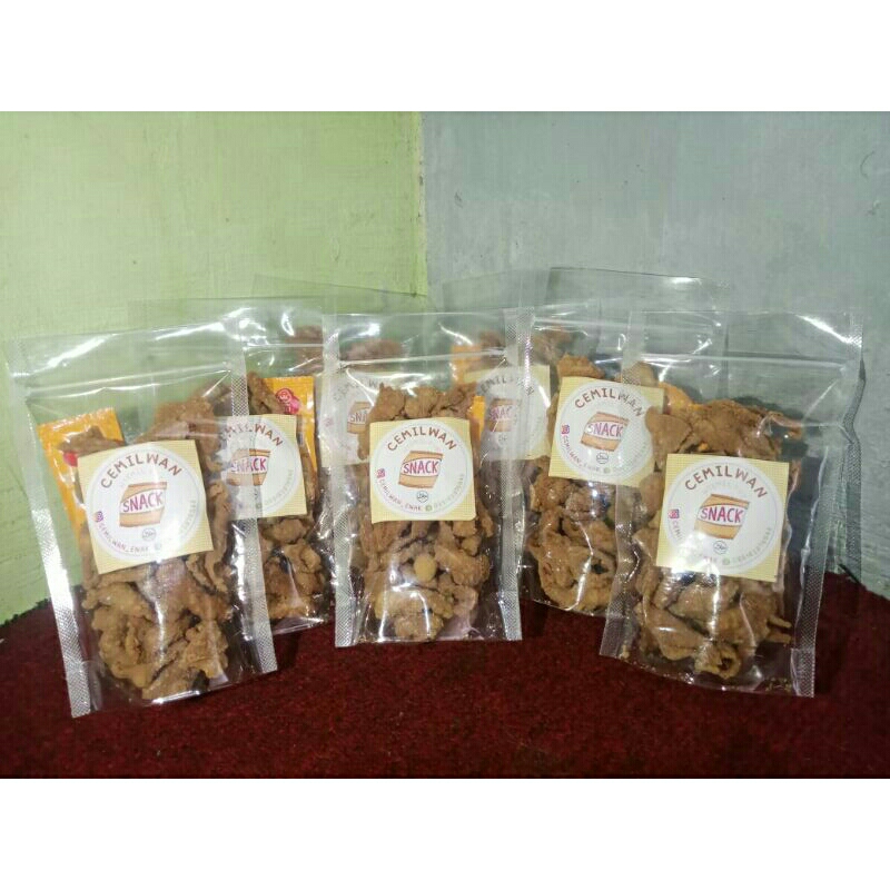 terbuat dari kulit ayam yg diolah menjadi cemilan yg crispy