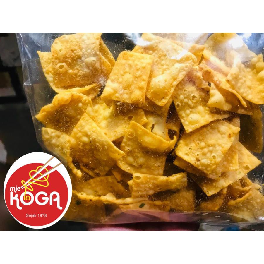 Kulit Pangsit Goreng Rasa Telor Asin ini enaknya luar biasa, renyah & gurih rasa Telor Asin ya begitu terasa nikmat buat tambahan toping Mie Ayam Legendaris Koga.