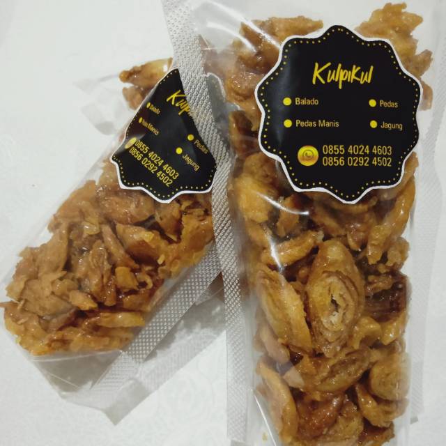 Snack ringan terbuat dari kulit lumpia. Kulpi kul karamel. Manis dan renyah.