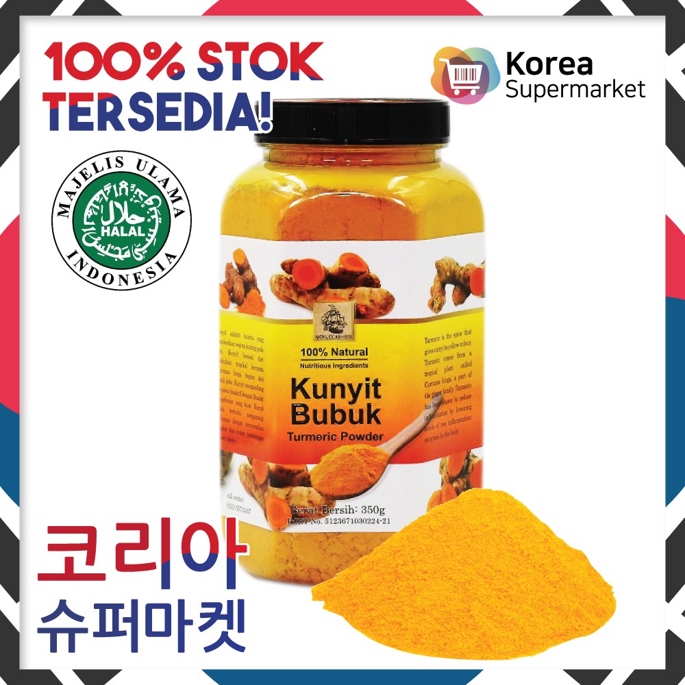 Terbuat dari bahan kunyit yang dikeringkan lalu digiling tanpa bahan pengawet, pewarna dan bahan kimia lainnya. Produk tahan hingga 6 bulan sampai 1 tahun hingga berubah warna atau rasa. Simpan dalam wadah tertutup (kedap udara), hindari dari sinar matahari dan Suhu Yang lembab agar awet.