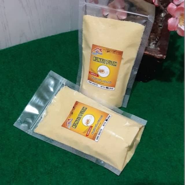 Kunyit putih bubuk siap seduh tinggal ditambahkan air dan siap dinikmati.