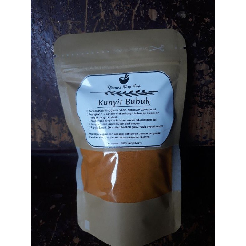 Kunyit bubuk 100% murni tanpa tambahan apapun.