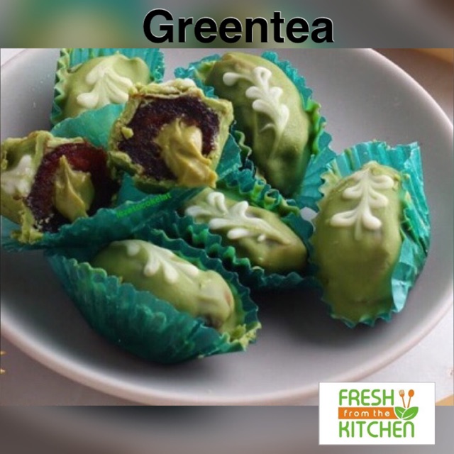 Kurma pilihan yg dilapisi coklat greentea dan di isi dengan selai greentea