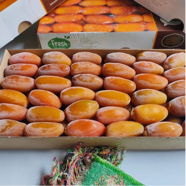 Kurma Deglet atau biasa yang disebut RUTHOB ini memiliki tekstur yang masih renyah dengan warna kuning yang cantik ,
