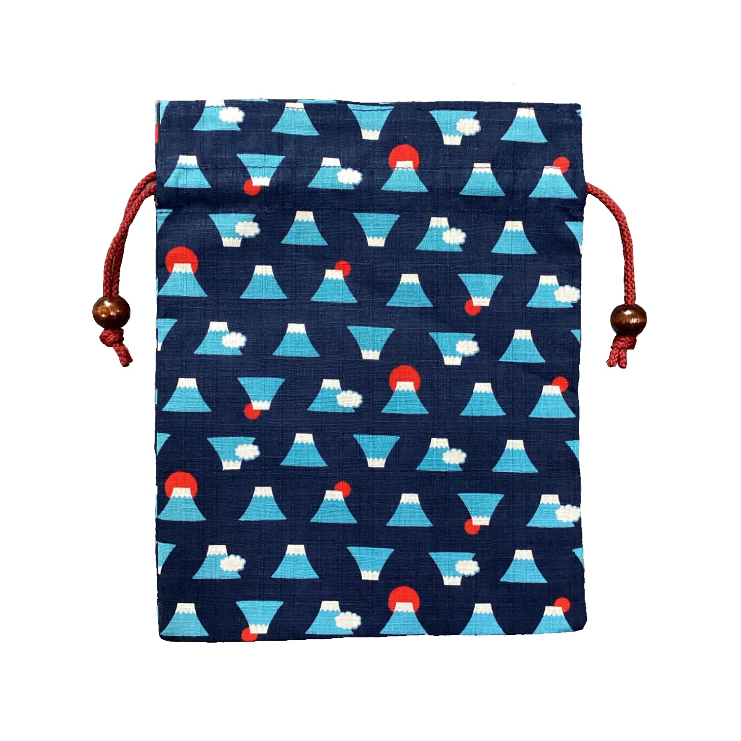 Kyosuke Сделано в Японии Мешочек на кулиске x хлопок с деревянным Фудзи на подкладке темно-синий японский мотив, прибл.. 24.5 19см, Шары, Мт. Вверх, Синий,