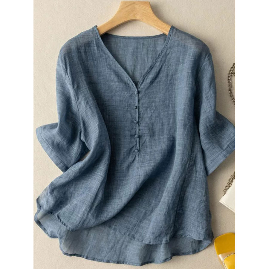 Lässige Lockere Einfarbige Kurzarmbluse Mit V-Ausschnitt