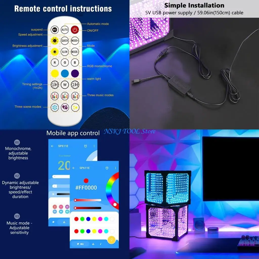 L8RC Acrylic Cubes Lamp Infinitys Visual Effect Light Modes App Remote Control USB
