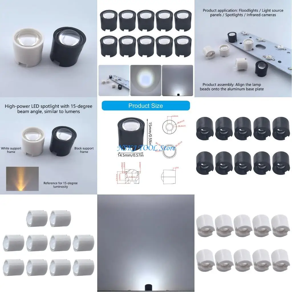 L8RC LED Lighting Component 15 Degree LED Lens Reflector Collimator 14.5mm Diameter