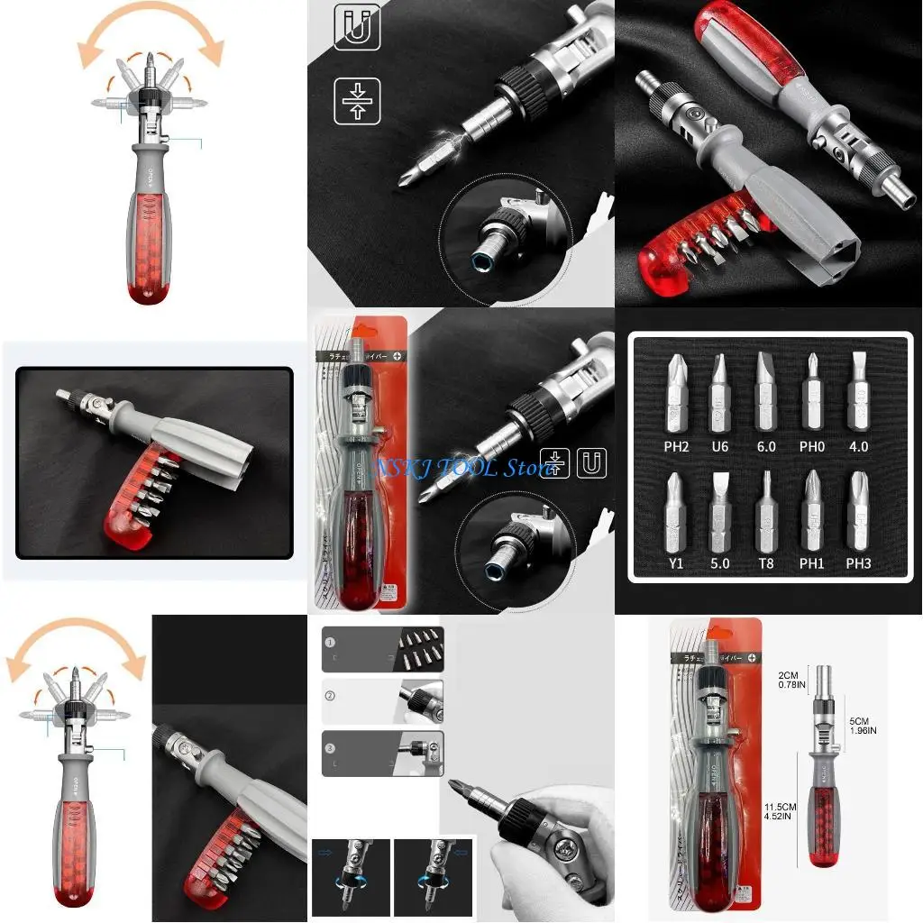 L8RC Ratcheting Screwdriver with Bit Ratchet 10 Bits 10 in 1 Screwdriver