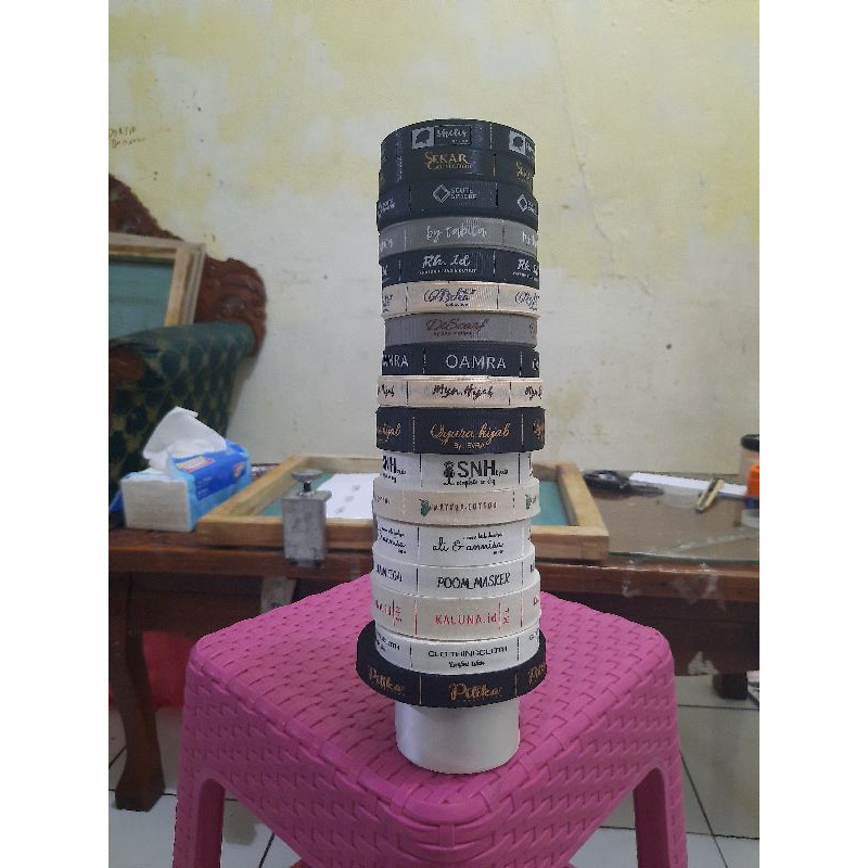 Terima order label pita untuk merk baju,hijab atau souvenir. harga untuk jenis pita grosgrain atau satin satu roll + sablon (1 WARNA)