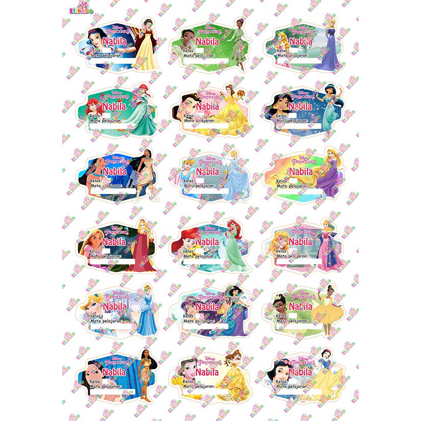 - Sticker label nama Princess Disney anti air, anti sobek, dan tidak luntur.