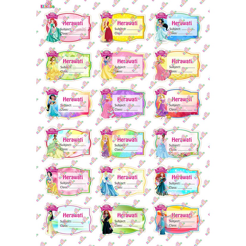 - Sticker label nama Princess Disney anti air, anti sobek, dan tidak luntur.