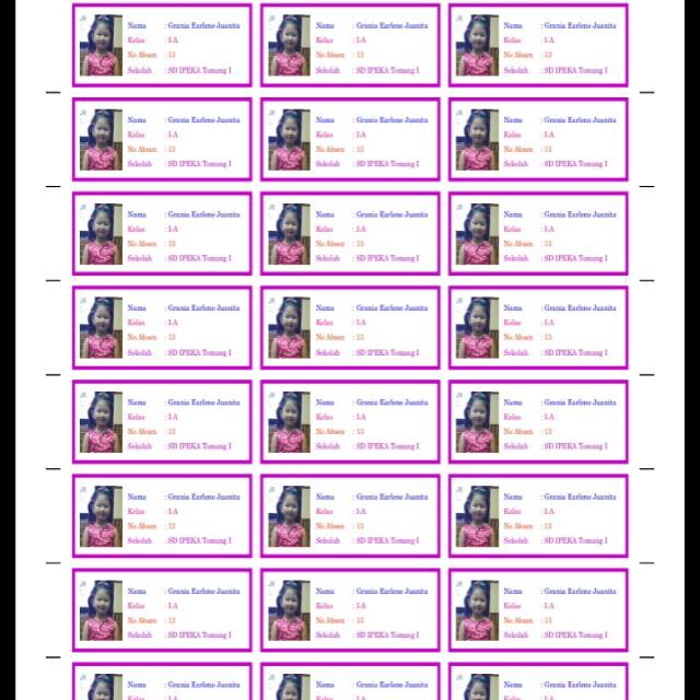 Label nama ukuran kartu nama 30 pcs RP 40.000, bisa pake foto desain boleh dari costumer buat anak sekolah file kirim by email