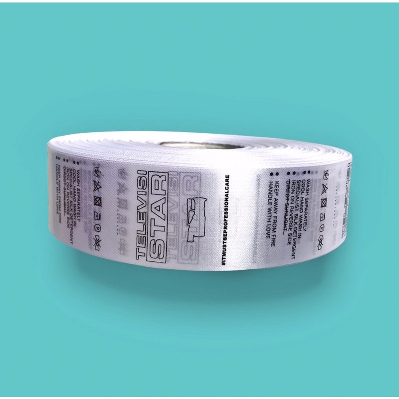 label pita satin cocok digunakan untuk label pakaian, kaos, celana, wash care dan lain sebgainya